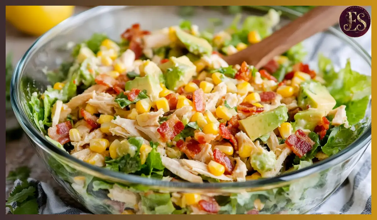 This fresh and hearty salad features tender chicken, creamy avocado, crispy beef or turkey bacon, sweet corn, and juicy tomatoes tossed in a zesty lemon-lime vinaigrette. Perfect for a healthy lunch, light dinner, or meal prep!