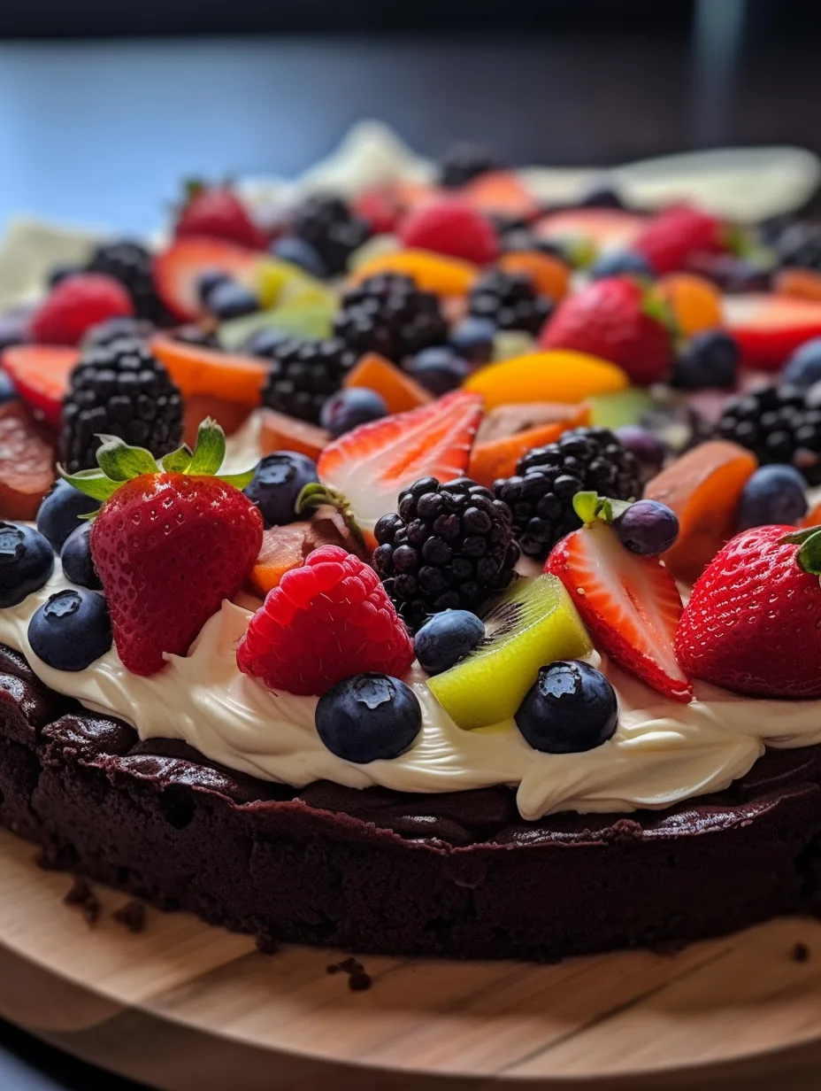 5. Vegan Version: For a vegan Brownie Fruit Pizza, use a flaxseed or chia seed mixture in place of eggs, and substitute dairy ingredients with plant-based alternatives.