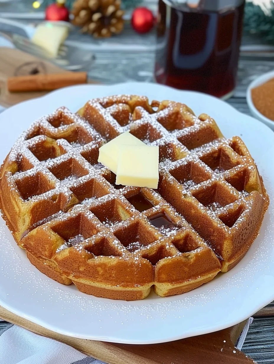 Each bite of these waffles is a wonderful blend of flavors that evokes nostalgia and warmth, reminiscent of cozy holiday gatherings. The crispy exterior and fluffy interior create a delightful texture that pairs beautifully with maple syrup, whipped cream, or even a sprinkle of powdered sugar.