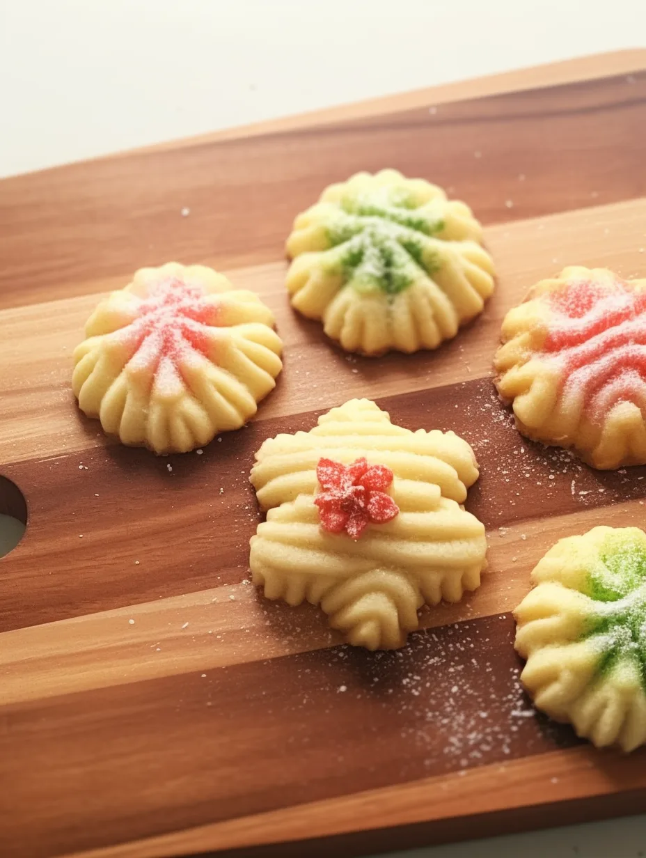 4. Colorful Holiday Spritz: Divide the dough into several portions and add different food coloring to create eye-catching cookie assortments.