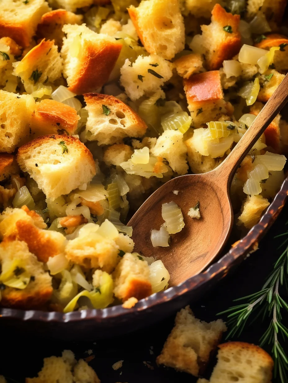 – Use Day-Old Bread: Using day-old bread is crucial for achieving the right texture in your Classic Stuffing. Fresh bread tends to be too soft and can become mushy when mixed with broth.