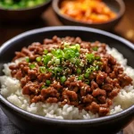 7. Assemble Bowls: In serving bowls, place a generous scoop of cooked rice. Top with the beef mixture.