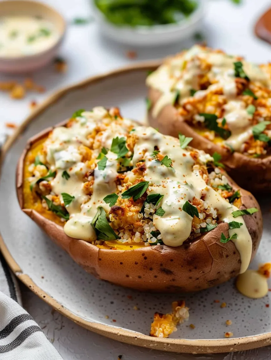 Quinoa Stuffed Sweet Potatoes With Tahini Sauce is a delightful dish that balances nutrition and flavor effortlessly. Each bite is an explosion of tastes, making it a perfect option for any meal. Whether you’re cooking for yourself or entertaining guests, this recipe is sure to impress. With its versatility, ease of preparation, and healthy ingredients, it’s a dish you’ll want to make time and time again. Enjoy the journey of creating this incredible meal!